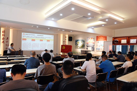 党总支副书记\LHD二支部党支部书记仲峰泉作了题为《中共北平(京)党组织早期发展历程及主要成员》的党课报告,他详细讲述了早期中共北平党组织从创建到发展壮大的过程以及李大钊等主要成员的英雄事迹。他号召全体党员积极响应上级党组织“学党史、悟思想、办实事、开新局”的号召。大力发扬红色传统、传承红色基因,赓续共产党人精神血脉,始终保持革命者的大无畏奋斗精神,鼓起迈进新征程、奋进新时代的精气神。