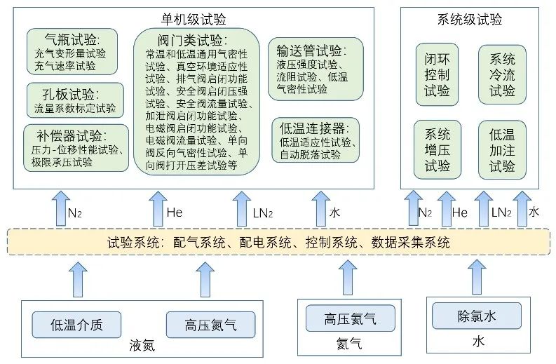 液体火箭高压供配气和低温供液通用试验平台已成功应用于各项液体火箭试验。典型试验包括贮箱低温密封试验、换热试验、孔板标定试验、输送管试验、补偿器试验、低温连接器和阀门研制阀以及阀门功能综合试验。