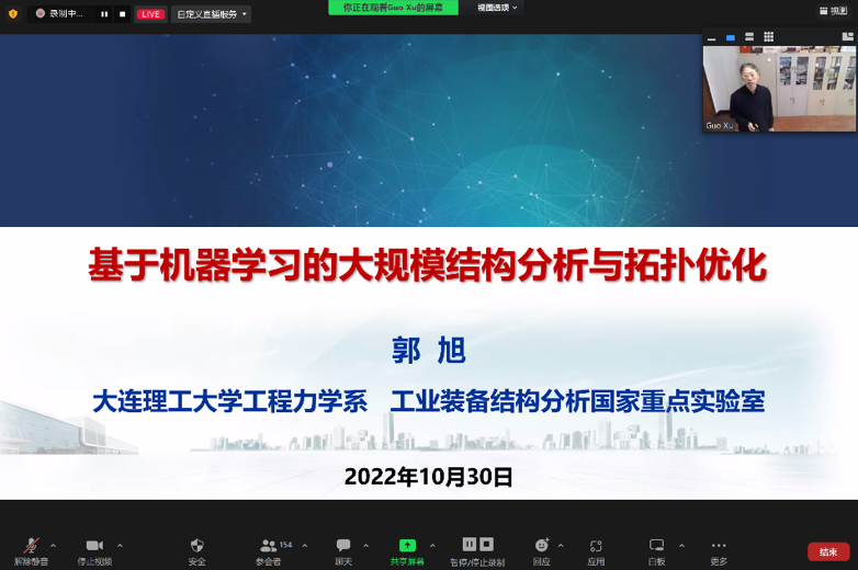 会议共有30个报告,其中邀请报告包括:香港科技大学张统一院士的报告《专业知识指导下的机器学习》;西北工业大学张卫红院士的报告《我与结构多尺度问题研究》;美国工程院院士、布朗大学G. Karniadakis教授的报告《 Physics-Informed Machine Learning: Blending data and physics for fast predictions》;哈尔滨工业大学(深圳)B. Noack教授的报告《Turbulence Control — Better, Faster and Easier with Machine Learning》;大连理工大学郭旭教授的报告《基于机器学习的大规模结构分析与拓扑优化》;清华大学任祝寅教授的报告《Machine Learning in Turbulent Reactive Flow Simulations》;以及北京科学智能研究院张林峰研究员,北京航空航天大学董雷霆教授,美国伦斯勒理工学院Shaowu Pan助理教授,美国宾夕法尼亚大学的Lu Lu助理教授,Q彩网张鑫磊博士等嘉宾的报告。