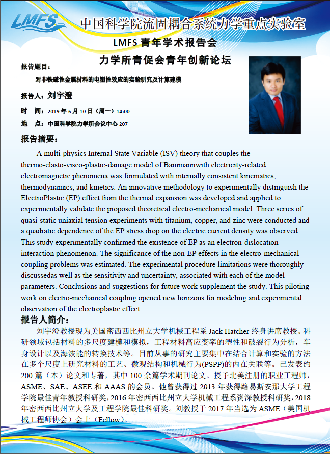 (LMFS 6月10日14:00 会议中心207)对非铁磁性金属材料的电塑性效应的实验研究及计算建模