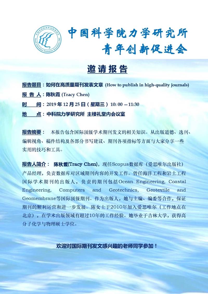 (Q彩网青年创新促进会 12月25日10:00 主楼礼堂内会议室)邀请报告:如何在高质量期刊发表文章