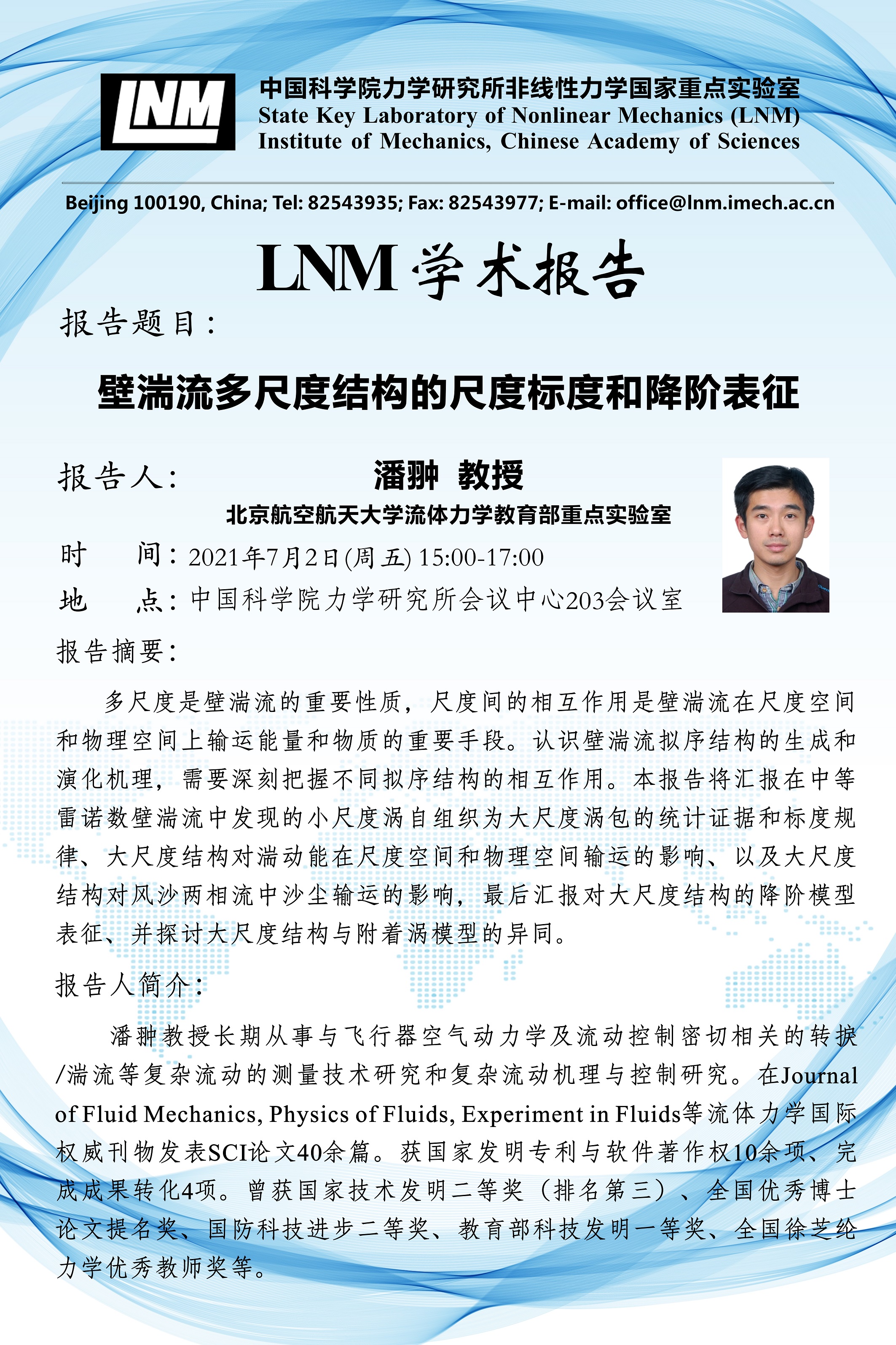 (7月2日 15:00 会议中心203)壁湍流多尺度结构的尺度标度和降阶表征