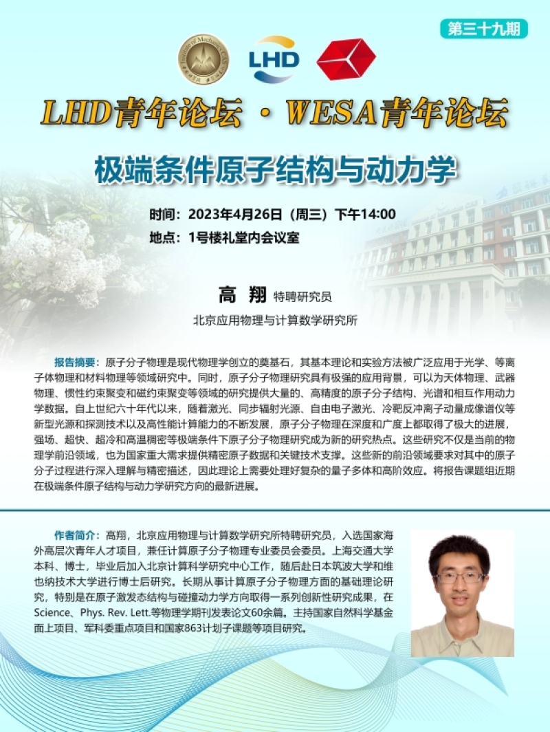 (LHD青年论坛&WESA青年论坛 4月26日 14:00 1号楼礼堂内会议室)极端条件原子结构与动力学