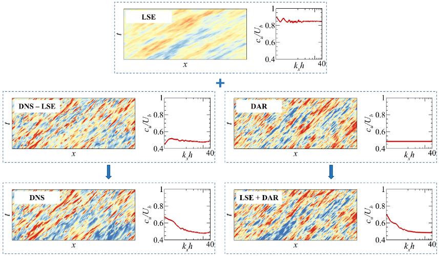 图1:动态自回归模型结合线性随机估计模型重构的具有给定湍流时空能谱特征的近壁湍流脉动速度场。