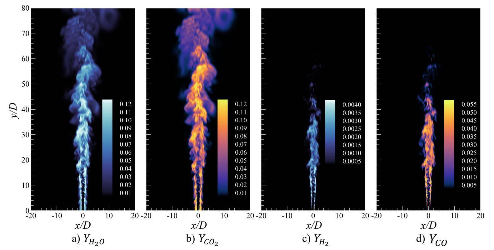 图5:Sandia Flame D瞬时各物质组分质量分数云图。