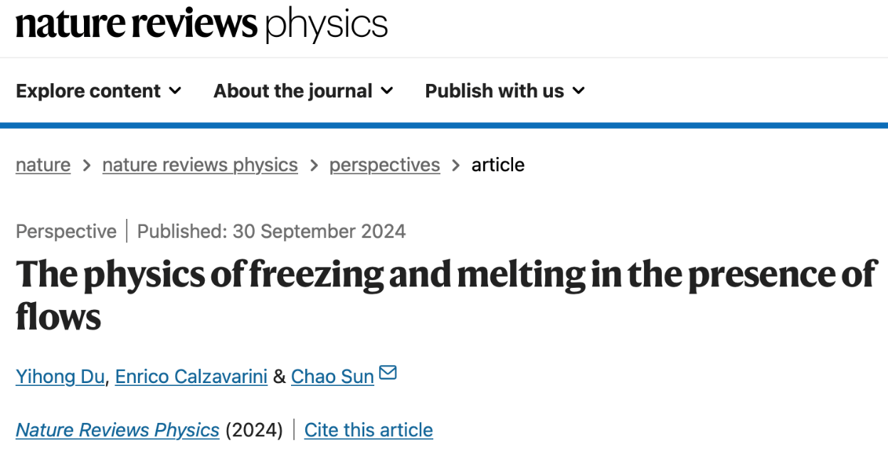 Nature Reviews Physics展望性综述论文:水体流动和冰水相变的耦合动力学