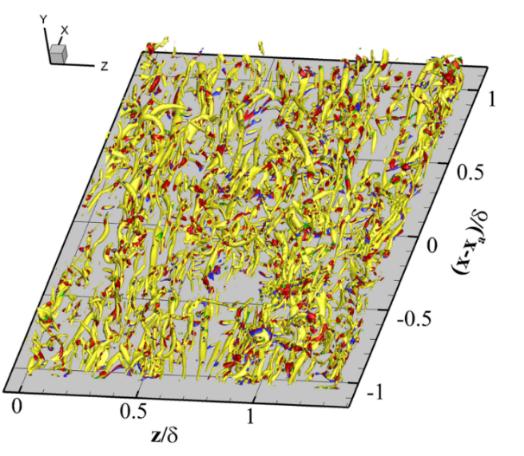 在可压缩边界层湍流中,基于速度梯度张量的不变量可以将流动分为八种不同的拓扑结构。北京大学陈十一教授科研团队通过研究滤波后的速度梯度张量的不变量,将滤波后的流场分为八种拓扑结构,不同的拓扑结构代表不同的流动特性。图8表示了拓扑结构S4在涡结构中占主导,展现出拉长的管状结构。拓扑...