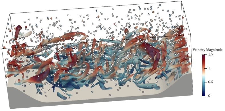 清华大学孙超教授科研团队采用全尺度模拟精确地计算了湍流场与有限尺寸颗粒间的耦合作用。图10展示孙超团队利用全尺度模拟得到的颗粒运动轨迹和颗粒周围的能量耗散率以及速度的分布。研究发现,椭球颗粒的加速度均方值与颗粒的尺寸存在指数接近-1的标度律关系。同时,采用流场加速度的体积平均...