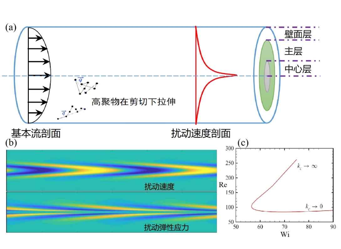 在湍流溶剂中加入微量的高聚物会达到减阻的效果,这已经被应用于阿拉斯加的石油管道输运工业中。近期实验发现,高聚物湍流的最优减阻状态发生在“弹-惯性湍流”机制下。这是一种不同于传统牛顿流体的新的湍流机制,它与粘弹性流动中特有的中心型失稳模态相关(对于牛顿流体,圆管流动中的线性扰...