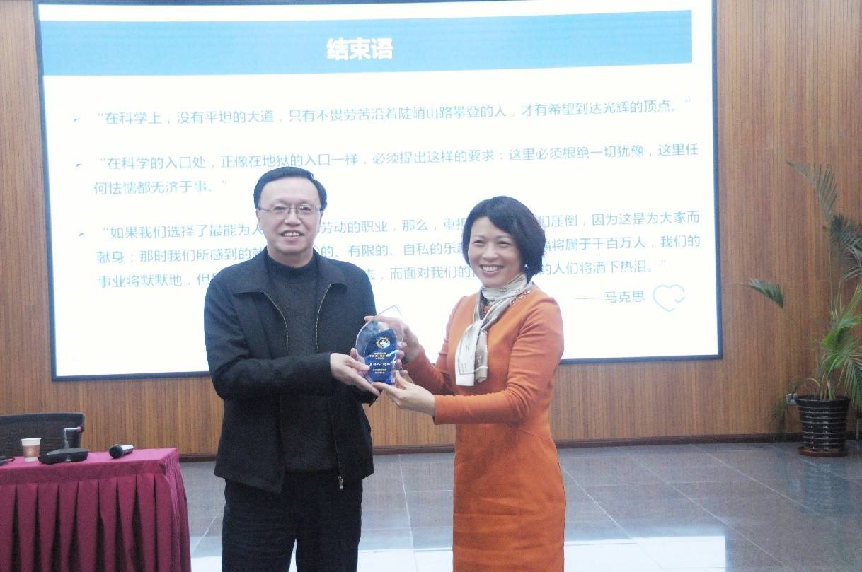 最后,刘桂菊为主讲嘉宾赵路颁发了“大师讲坛”纪念杯。