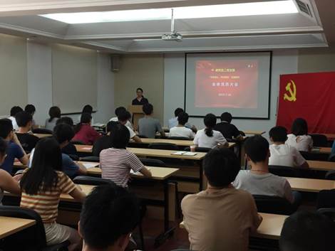 7月26日下午,研究生第二党支部召开全体党员大会,开展“不忘初心,牢记使命”主题教育学习活动。支部50余名研究生党员参加了大会。会议由支部书记刘丽主持。