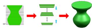 数据分割是指将三维数据模型进行分层 切片处理,将模型文件换化为打印机能够识 别的加工文件(图 4) 。其中 STL 是当前使 用最为广泛的模型分割文件。建立了建模软 件和 3D 打印机之间协作的通道,是 3D 打印 机支持的最常见文件格式,STL 文件格式只 能描述三维物体的几何信息,不支持颜色材 质等信息。将 STL 文件中的三维数据分割为 二维数据,即把整个三维模型沿水平面“切 割”成一定数量的二维薄片,对应每一个薄 片生成其平面尺寸数据。