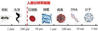 图 1. 丰富的微纳尺度世界及人眼分辨率