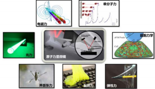 原子力显微镜于 1986 年由瑞士科学家宾 尼希(Gerd Binning) 发明, 其核心部分是一根带有纳米尖端的悬臂。利用它像我们的 手指一样,去触摸样品的表面,在运动过程 将探针高度变化的信息通过激光传回位置灵 敏接收器, 我们就可以得到样品表观的形貌, 一般情况下,原子力显微镜的横向分辨率能 达到 1nm,纵向分辨率为 0.2nm。不仅如 此,原子力显微镜还具有高精度的力学测量 能力,作用于悬臂尖端的力可用胡克(Hooke) 定律定量描述,其力学分辨率能达到 1pN。 发展至今,原子力显微镜在微纳米尺度的力 学研究中已被应用于测量纳米材料表面和探 针之间各种相互作用力,如范德华力、电磁 力、光力、黏滞阻力等,通过对探针的修饰 和改性来测量界面的张力、黏附力、分子间 相互作用、各种材料的力学性质等。