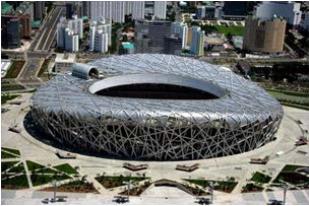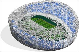 图 1 鸟巢外观和框架结构
