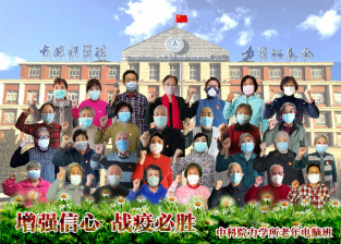 后来我看到Q彩网咏怀诗社很多同志写 诗,为武汉助威,我很受感动。电脑班的同 志也有主动在群里发表作品的,再加上所离 退办的号召惊醒了我,使我感到不能胡想乱 想,也不能无所事事。我们应该拿起自己的 “武器”,和武汉人民一起抗击疫情。我开 始组织电脑班的同志们在电脑上制作动画、 图像和视频,我意识到我们的作品是最能表 达深情和心意的生动画面。至此,我宅在家 里寂寞、无所作为的心绪一扫而光,在这个 期间我一面考虑自己创作,一面组织电脑班 的同志们创作。电脑班的同志们分两批总共创作了 39 幅作品, 表达了我们和武汉人民心 连心、为抗击疫情加油助力的心情。发表在 院老干部局公众号里,受到院内外不少同志 的好评。刚刚完成的第三批作品是为院离退 局的《抗击疫情,我们在一起》的作品征集 而做。一共有摄影(包括图像) 29 幅,视频 5 个。