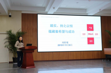 2019 年 11 月,在研究生思想教育报告会上,刘桂菊作题为《踏实、持之 以恒蕴含着希望与成功》的主题报告