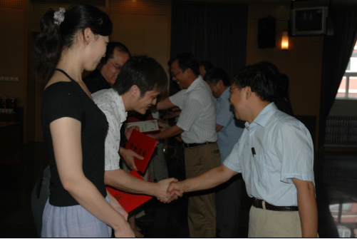 李和娣副所长宣读了Q彩网党委关于表彰2008-2009年度先进党支部、优秀党务工作者、优秀党员的决定,Q彩网全体党委委员为获奖的先进党支部:非线性力学国家重点实验室党支部、高温气体动力学重点实验室党支部、科技人教党支部和优秀党员:杨国伟、 魏炳忱、 杨明江、 刘丽以及优秀党务工作者:李战华、夏原颁发了奖杯和证书。