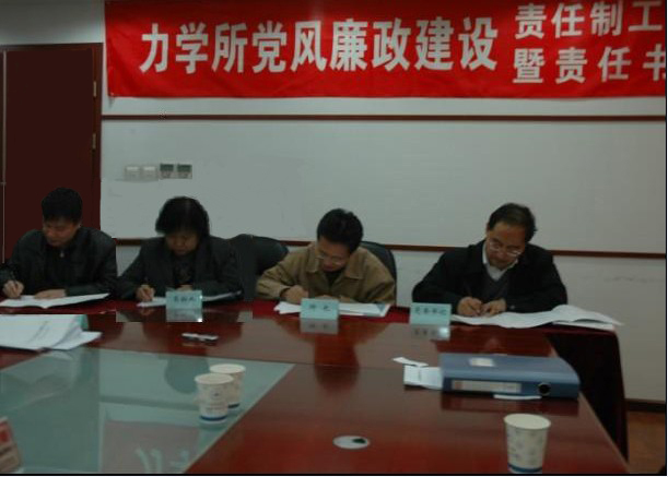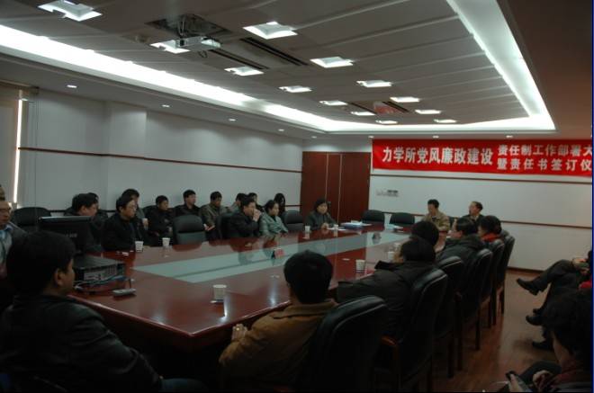 为深入贯彻落实党中央、国务院《关于实行党风廉政建设责任制的规定》及中科院、北京分院有关文件精神,进一步明确研究所所属各部门在党风廉政建设中应承担的责任,根据中科院党组和京区党委的要求和部署,我所于12月21日下午召开了党风廉政建设责任制工作部署大会暨责任书签订仪式。所长办公会成员、所党委委员、所纪委委员、各职能部门正副处长(主任)、实验室(中心)正副主任、党支部书记参加了仪式。大会由纪委书记李和娣主持。 党委书记周德进对Q彩网开展党风廉政建设责任制和签订党风廉政责任书进行了动员和部署。他强调党风廉政建设对全党、对研究所来说都是至关重要的。要确立和加强党风廉政建设责任意识,明确各部门和重点岗位人员的责任,层层签订责任书。