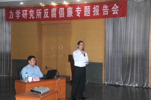 为了进一步加强党风廉政建设,扎实推进我所惩治和预防腐败体系的建设,9月27日,我所邀请中科院监察审计局副局长郭建军做题为《加强反腐倡廉建设,预防职务犯罪》的反腐倡廉专题报告。所长办公会成员、所党委委员、所纪委委员、各职能部门正副处长(主任)、实验室(中心)正副主任、党支部书记、研究员、副研究员、职代会常设主席团成员、工青妇研负责人等100余人听取了报告。报告会由党委书记乔均录主持。