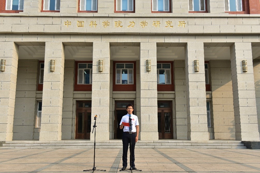 青年科研骨干代表和研究生代表分别进行了国旗下的主题演讲,分享了他们科技报国的初心,坚定了献身科研的理想信念。非线性力学国家重点实验室研究员袁泉子表示,在新时代、新机遇、新挑战下,将不忘初心,时刻牢记我们肩负的光荣使命,瞄准世界科技前沿,着眼国家重大需求,在国民经济主战场上奋勇争先。高温气体动力学国家重点实验室学生王方仪表示,在实现自我价值的征途中,将时刻牢记锻炼对党忠诚的政治品格,牢记国家战略科技力量的使命,坚定创新自信,努力奋斗,挑战自己,拓宽眼界,为科研事业贡献力量。