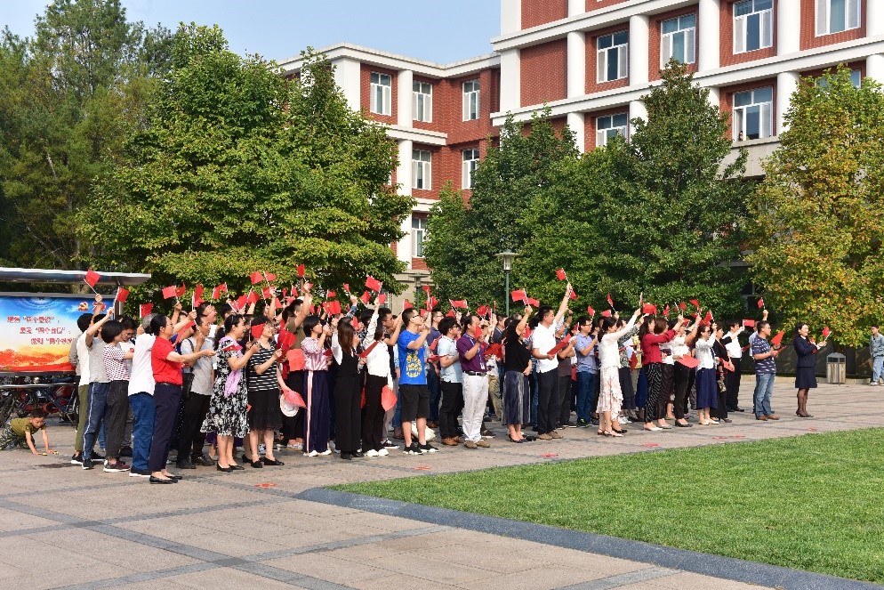 非线性力学国家重点实验室40余位老师统一着装,高唱红色经典歌曲《我们走在大路上》和《我和我的祖国》,以饱满的热情、嘹亮的歌声,表达对党的无限热爱和对祖国母亲的深情祝福。活动在全体人员齐唱中落下帷幕。