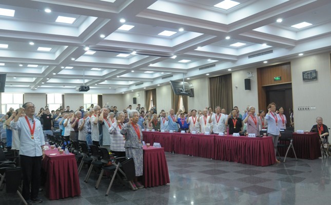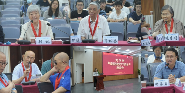 纪念章颁授仪式结束之后座谈会开始。曾任党委书记的韩林和肖林奎、有着73年党龄的离休干部冼杏娟、特意从外地家中赶来参会的老政工干部李惠风依次发言,他们回忆自加入中国共产党起,在党的培养下自身的成长历程,以多年来亲眼见证的共产党发展的不同时期,由衷地赞叹共产党取得的伟大成就。他们纷纷表示深切感受到以习近平同志为核心的党中央的关怀,更为自己是一名中国共产党员而感到无上光荣和自豪。即将毕业的研究生苗青代表学生宣读了《致老科学家的一封信》,表达了对老党员、老科技工作者的崇高敬意。李海勇代表所年轻干部理论学习小组发言,表示年轻人要学习老同志们对党忠诚,无私奉献,初心不改的精神和品格。