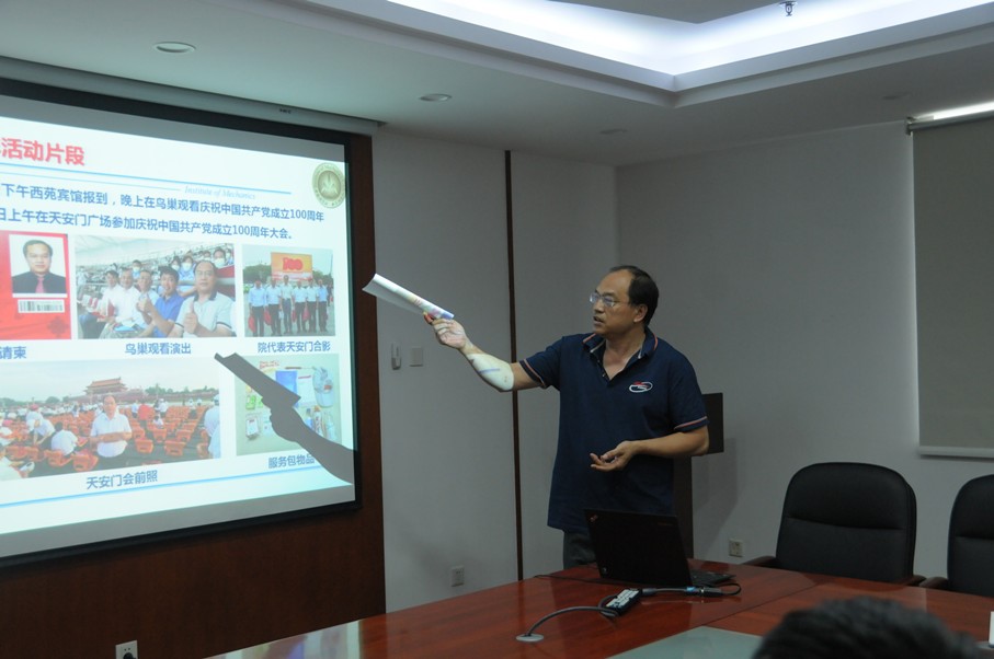 党委委员杨国伟传达了习近平总书记在庆祝中国共产党成立100周年大会上的重要讲话精神以及习近平总书记在中国共产党与世界政党领导人峰会上的主旨讲话精神,并分享了现场参加庆祝中国共产党成立100周年大会感想与体会。