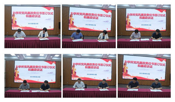 党风廉政建设责任书签订仪式上,党委书记、所长与学术所长,领导班子成员与分管实验室负责人、新提任教育处处长,党委副书记、纪委书记与党支部书记分别签订党风廉政建设责任书或廉政建设责任书。