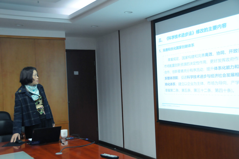会议第一阶段,刘桂菊带领大家学习了《中华人民共和国科学技术进步法》,从修法的必要性、重要意义、总体要求、主要过程、主要内容等几个方面对修法进行了系统解读。她强调,要坚持以习近平新时代中国特色社会主义思想为指导,结合我所实际贯彻落实《中华人民共和国科学技术进步法》,做到学用结合,切实提高学习效果。