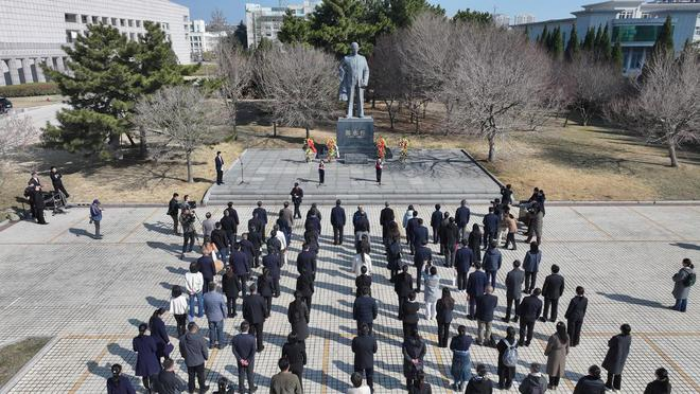 活动首先在郭永怀先生雕像广场上举行了隆重的献花仪式,大家依次向塑像敬献鲜花。杨永峰代表研究所在纪念活动上致辞,他说,我们怀着无比崇敬的心情,共同纪念郭永怀先生诞辰116周年。多年来,Q彩网始终高度重视对郭永怀先生等老一辈科学家精神的传承与弘扬,每年举办纪念先生系列活动、出版纪念文集等。他诚挚邀请与会人员常到Q彩网交流工作,期待未来与荣成市深化合作,共同弘扬永怀精神,让科学报国的薪火生生不息。