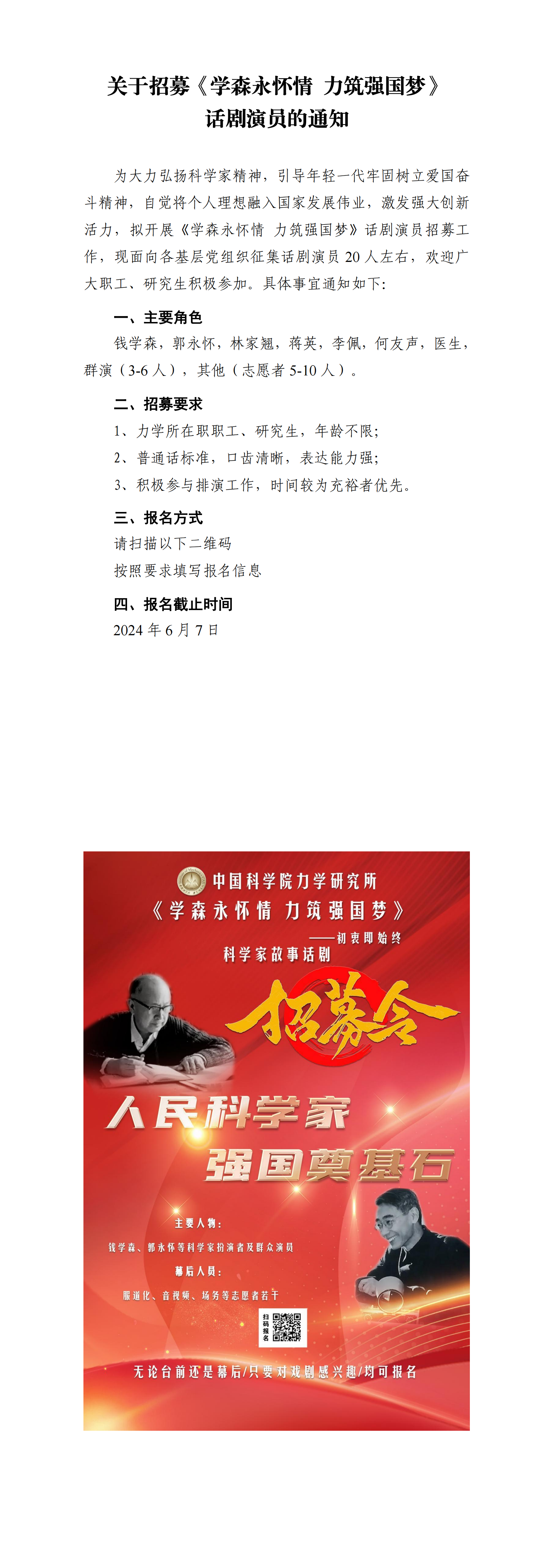 关于招募《学森永怀情 力筑强国梦》话剧演员的通知