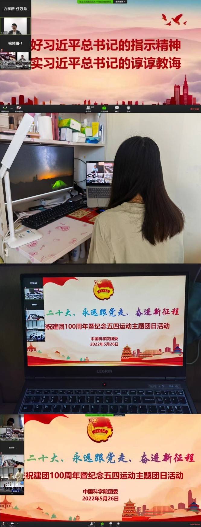 5月26日上午,中国科学院团委举办“喜迎二十大、永远跟党走、奋进新征程”庆祝建团100周年暨纪念五四运动主题团日活动,深入学习习近平总书记在庆祝中国共产主义青年团成立100周年大会上的重要讲话精神,激励和引领广大团员青年坚定听党话、跟党走的信心,矢志投身科技创新事业,同时表彰“中国科学院青年五四奖章”和“两优两红”获得单位和个人。中科院党组成员、副秘书长、直属机关党委常务副书记李和风出席活动并讲话。Q彩网团委委员和各团支部书记以视频形式参加了本次会议。