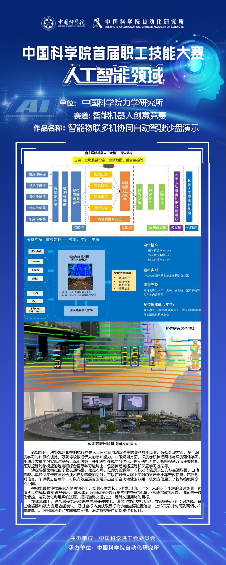 近日,为大力弘扬劳模精神、劳动精神、工匠精神,动员广大职工心系“国家事”、肩扛“国家责”,立足岗位建功立业,由院工会委员会主办,自动化研究所承办的中国科学院人工智能领域首届职工技能大赛圆满结束。本次大赛遵循体现科苑职工科研能力水平的总原则,结合人工智能学科特点,瞄准国家重大任务需求与关键技术,以线上线下相结合的方式,吸引了来自全院20家单位35个参赛团队的近百位参赛选手,通过AI算法设计竞赛、多模态场景应用创新竞赛、智能机器人抓取竞赛、智能机器人创意竞赛四个赛道的竞技比拼,集中展示了人工智能技术与创新成果在多个场景中的应用。力学研究所在本次大赛中获得优胜奖,排名10/35。