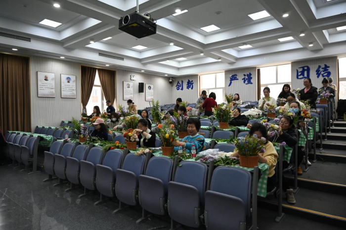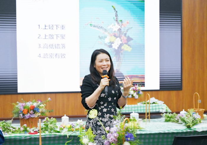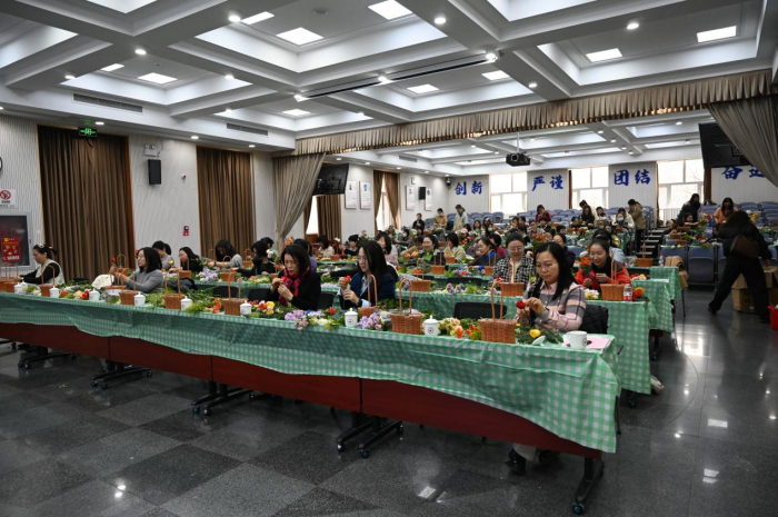 活动邀请专业花艺老师现场授课,花艺老师先为大家介绍了花材的品种和养护方法,然后用通俗易懂的语言为大家讲解了插花技巧,包括花卉选择、颜色搭配以及花枝长短的修剪等。大家在老师的带领下,结合各自手中的花材进行实践,认真创作,将原本普通的花材修剪、整理,做出了一个个精致的插花作品。手捧着色彩缤纷、形态多姿的美丽花篮,大家脸上都绽开了笑容,心情非常愉悦。