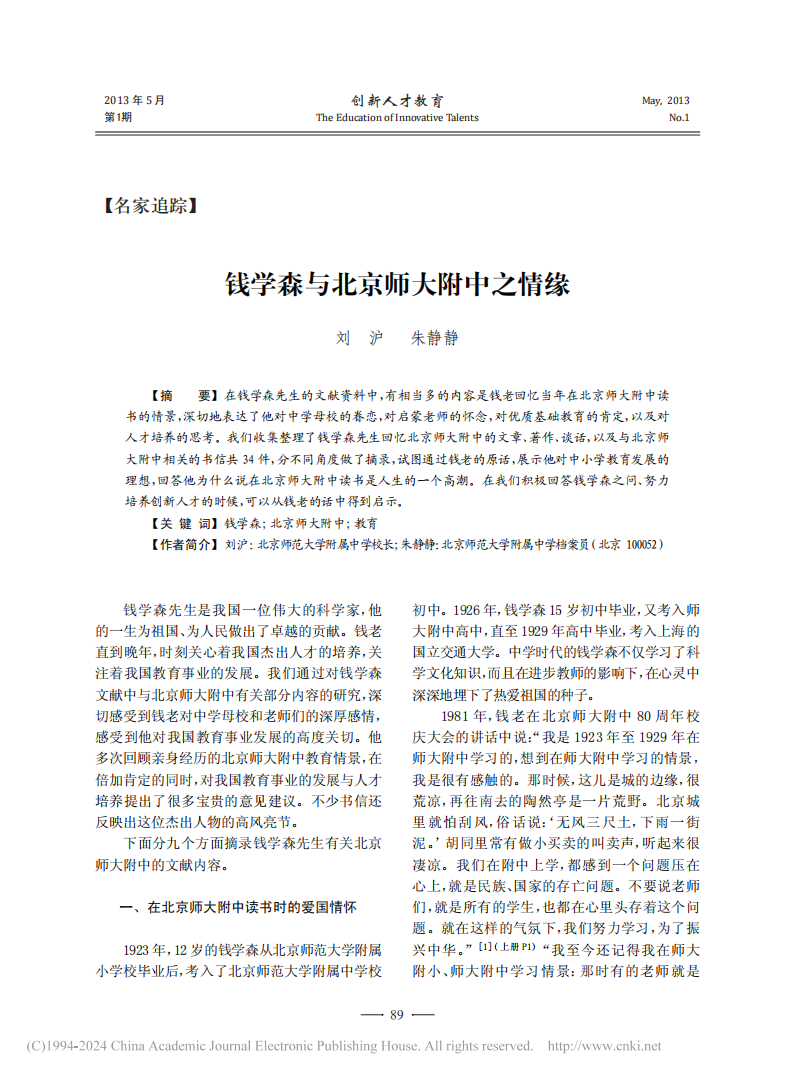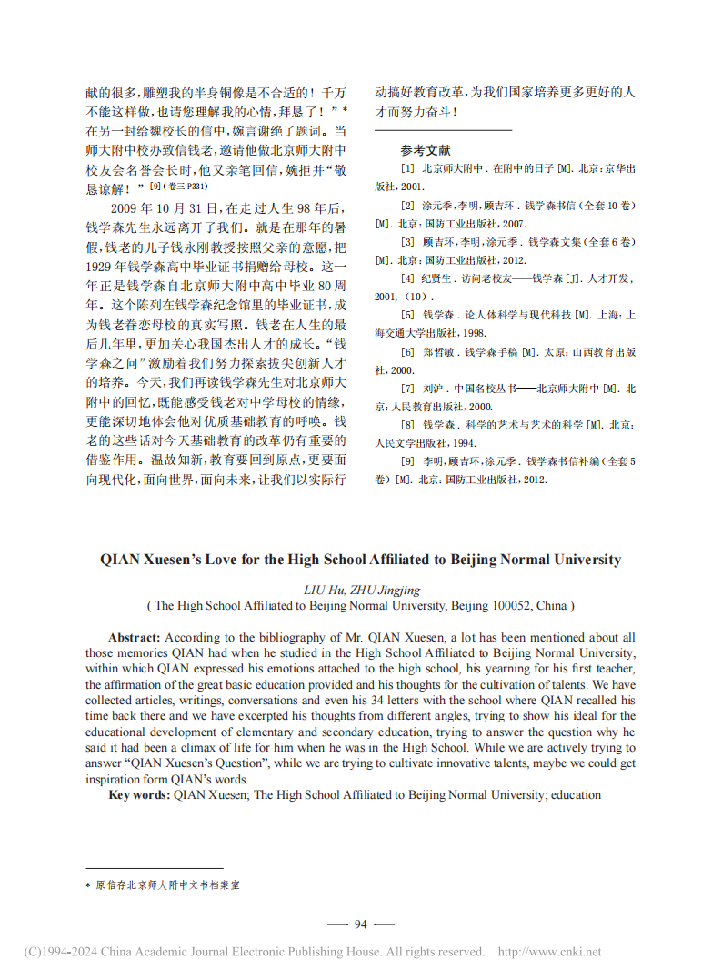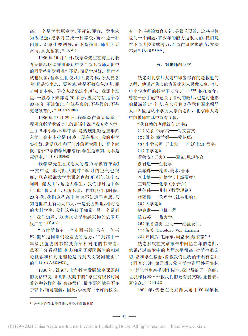 钱学森与北京师大附中之情缘