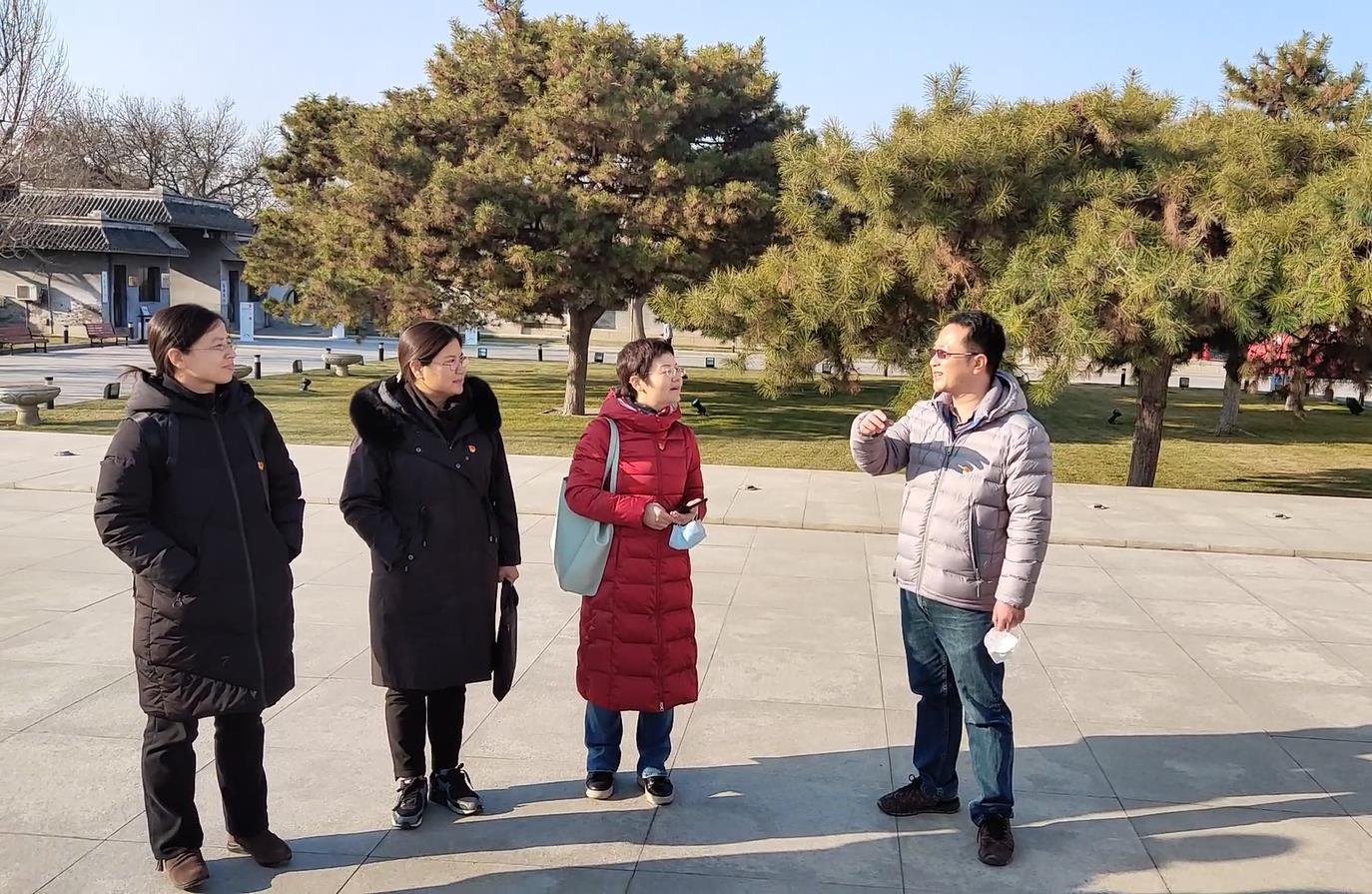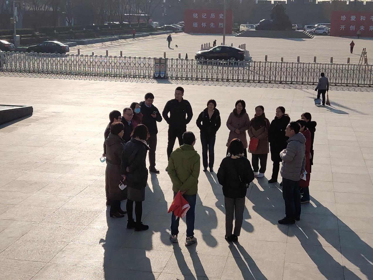穿过顺治门,全体党员来到了庄严雄伟的中国人民抗日战争纪念馆门前,大家进行了简短的互动交流。活动现场,蔡晖和闫聪分别介绍了科学研究部、学科办党支部以及机关一、二支部的基本情况以及党建工作概况。蔡晖回顾了去年来到Q彩网参观中科院“人民科学家?强国奠基石”主题教育基地的经历,闫聪向大家介绍了Q彩网怀柔园区的建设发展情况,在谈及“两弹一星”精神时,双方就促进长期党建合作交流再次共筑美好愿景,达成共识。