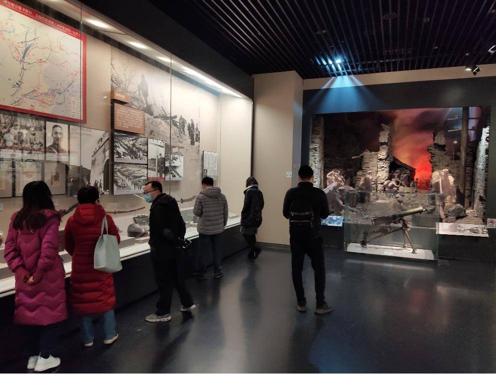 交流结束,全体党员进入纪念馆参观。首先映入眼帘的是“伟大胜利 历史贡献”八个主题大字,整个展厅分为“中国局部抗战、全民族抗战、中流砥柱、日军暴行、东方主战场、得道多助、伟大胜利、铭记历史”等八个部分。展览围绕“铭记历史、缅怀先烈、珍爱和平、开创未来”主题,通过图片、视频、文物和雕塑等多种表现形式,带领全体党员穿越历史长河回到当年的硝烟战场,感受中华儿女英勇无畏抗战的牺牲精神,重温中华民族14 年抗战的光辉历程。