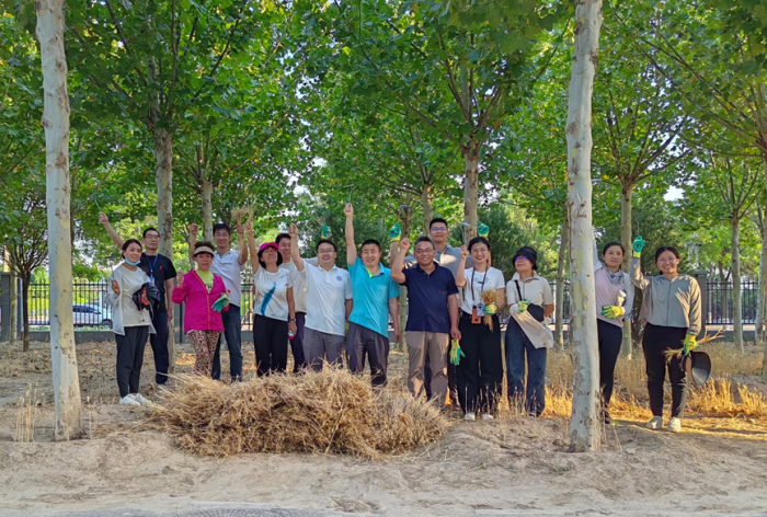 最后,全体党员在园区绿地开展割小麦活动。大家认真学习,自发组队,分工协作。收割现场烈阳高照,党员们的劳作热情也很高,大家发扬不怕累、不怕苦的精神,用自己的劳动践行着初心和使命。