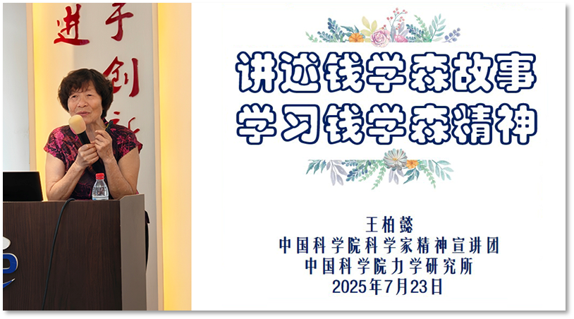 为深入学习研究所历史,传承老一辈科学家的精神血脉,7月23日,空天飞行高温气动全国重点实验室(LHD)党总支与宽域飞行工程科学与应用中心(WESA)党支部联合开展研究所历史与科研传承主题党日活动。活动由党委委员、LHD党总支书记赵伟主持,邀请中国科学院科学家精神宣讲团王柏懿研究员作专题报告。