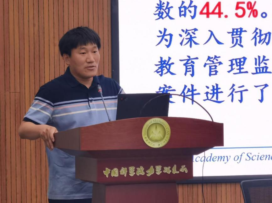 王展宣贯了干部队伍教育整顿工作安排和要求,党总支副书记张旭辉作了题为《警示教育案例分享》的报告,提醒广大党员警示自己,防微杜渐,警钟长鸣,严于律己,知敬畏、存戒惧、守底线,杜绝任何违法乱纪行为的发生。超常环境非线性力学全国重点实验室(筹)副研究员杨丰畅作了题为《中央工委青年干部培训体会》的报告,提醒广大党员干部认真学习习近平总书记重要讲话以及党中央对科技发展的研判,年轻干部要深刻认识新发展阶段的一系列规律和特征,站在全局和战略的高度想问题、办事情,将所思、所学、所悟、所能更好转化为奋进新征程、建功新时代的强大动力,不负殷切期望。质量保密办公室主任刘宏立作了《2023年全所半年保密检查情况通报及保密工作宣贯培训》的报告,强调了接下来保密检查的重要性,提醒大家务必要高度重视。教育处副处长刘丽宣贯了Q彩网的招生制度,介绍了Q彩网导师招生制度和研究生指标的现状。