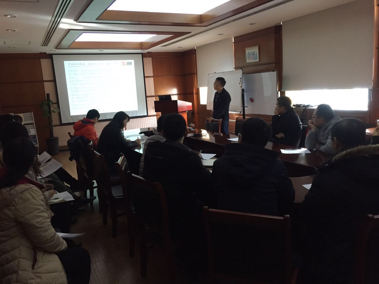 2018年12月27日上午,LNM党支部在Q彩网主楼344会议室召开了支部全体党员会议。会议主要围绕“支部书记讲党课”、“支部书记述职”、“党员民主评议”以及“2019年支部工作建议”等内容开展。会议由支部副书记孙成奇和组委邵颖峰同志共同主持,LNM支部20多位党员参加了会议。应支部邀请,所党委书记、副所长刘桂菊和党办的同志参加了会议,联系支部的党委委员、所纪委书记戴兰宏同志也以普通党员的身份参加了支部会议。