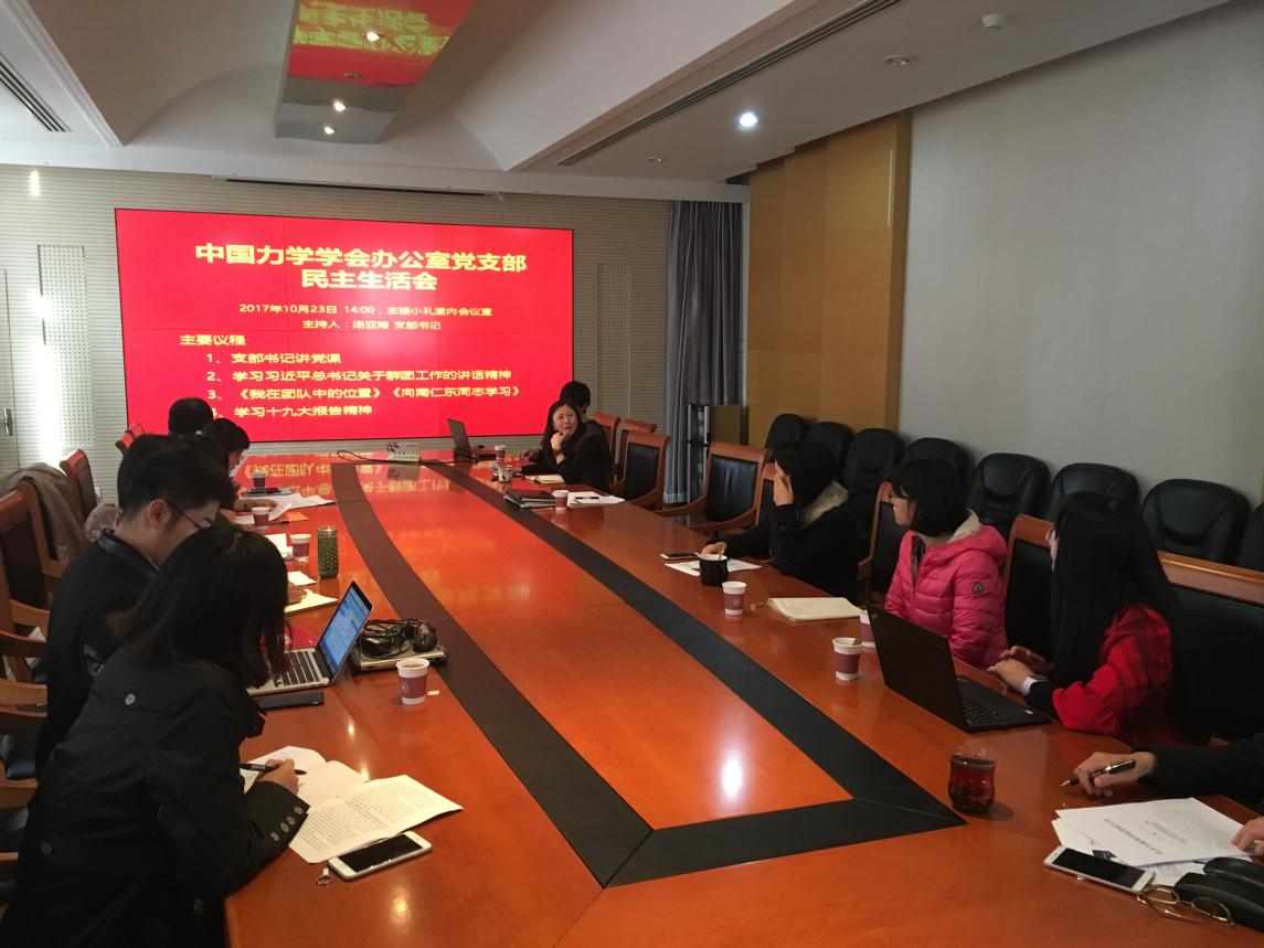2017年10月23日下午,力学学会办公室党支部大会在Q彩网小礼堂内会议室召开。学会办公室全体正式党员出席了会议,3位积极分子列席了会议。Q彩网党办同志也列席了会议。会议由支部书记汤亚南主持。