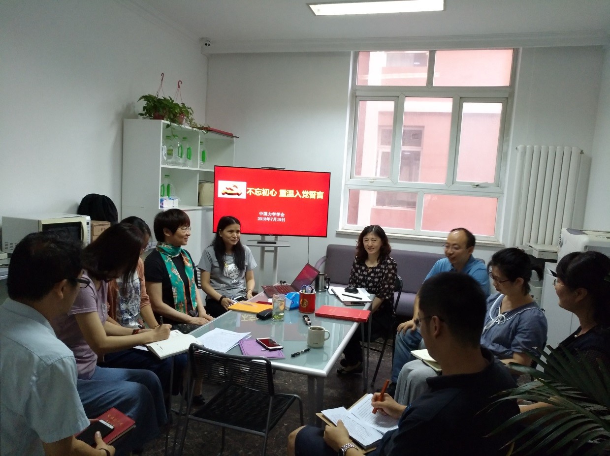2018年7月19日上午,力学学会办公室党支部召开了“不忘初心,重温入党誓言”为主题的支部活动。会议由支部书记汤亚南主持,主要议题包含学习十九大精神、延安精神主题教育学习以及支部党员重温入党志愿书。支部全体党员参加了此次活动。