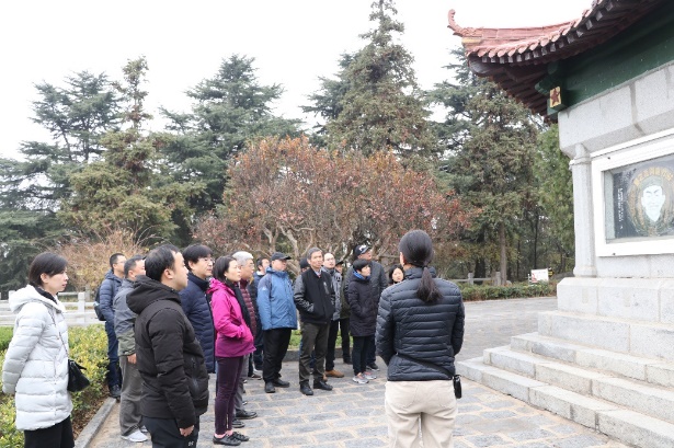 30日阴雨绵绵,赣榆抗日山烈士陵园似乎知道我们的到来。这是唯一以“抗日”命名的烈士陵园,由八路军在抗战最艰苦的1941年兴建,陵园墓区中安葬着800余位烈士的忠骨,塔碑上铭刻着3000多位烈士的英名。大家拾级而上,依次参观了八路军著名抗日将领符竹庭陵寝、国际友人纪念碑、抗战烈士纪念塔、抗日山纪念堂等地点,仔细学习并聆听了符竹庭、彭雄、田守尧等革命烈士的英雄事迹,瞻仰先烈,凭吊忠魂。抗日山历经几十年风雨沧桑,依旧巍然屹立,它象征了中华民族抵御外强,光复河山的伟大决心。随后,一行人在蒙蒙细雨中奔赴赣榆县黑林镇大树村刘少奇旧居参观学习。1942年6月17日至7月初,时任中共中央政治局委员、华东局书记、新四军政委的刘少奇曾在这里居住25天,指导抗日革命斗争。大家在学习过程中了解到,就是在大树村,刘少奇同志主持召开了一系列会议,发动村里的农民开展减租减息运动,指导大树村建立起第一个农民组织——职工会。通过参观,大家学习了老一辈无产阶级革命家实事求是、艰苦奋斗的优良传统,进一步提升自身的党性修养。