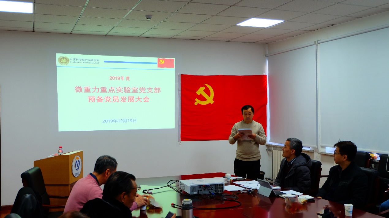 12月19日上午,微重力党支部召开支部全体党员大会。会议围绕党委委员讲党课,支部书记年度述职,预备党员发展,民主评议交流,等环节展开。所党委副书记、纪委书记魏炳忱,党委委员龙勉以一名普通党员的身份参加了会议。会议邀请所党委委员张新宇、党办主任朱国立参加。会议由支部副书记王双峰主持。