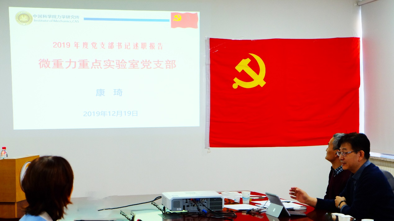 接下来,支部书记康琦作了全面的述职报告。2019年微重力党支部紧紧围绕实验室工作重点,根据所党委部署,扎实开展“不忘初心、牢记使命”主题教育,严格落实“三会一课”制度。报告从找初心、担使命、找差距、抓落实四个方面介绍了支部在主题教育、特色科普开展、先进模范学习、企业考察调研等方面开展的系列活动。参会支部党员对支部书记履职情况进行了民主评测,评测结果为优秀。