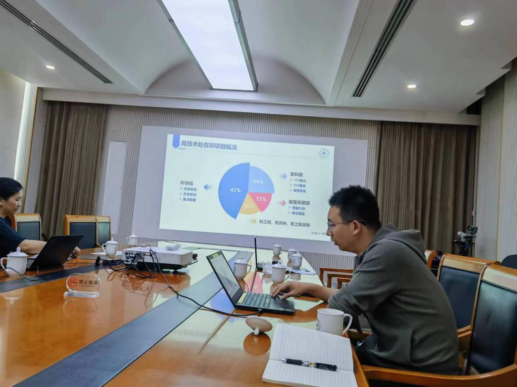李岩就工信部项目基本情况、项目布局以及相关申报流程做了详细介绍;于双同志就国家重点研发计划申报和管理相关内容作了报告,明确了“谁能报,如何报,如何管”等大家密切关注的问题;孙一非介绍了高技术处在研项目情况以及相关项目定位、布局及申报流程。高大鹏在线上参会,介绍了科技处在民口科研项目组织争取方面的相关工作,从对接需求、研讨布局、凝练选题到申报辅导、多样化交流平台和对外合作,为科研人员申报民口项目提供了全方位的支持。通过科技处和高技术处各位同志的报告,与会同志们对项目布局、申报和管理有了更加深入的认识,为部门申报和承担重大任务提供了良好生态环境。