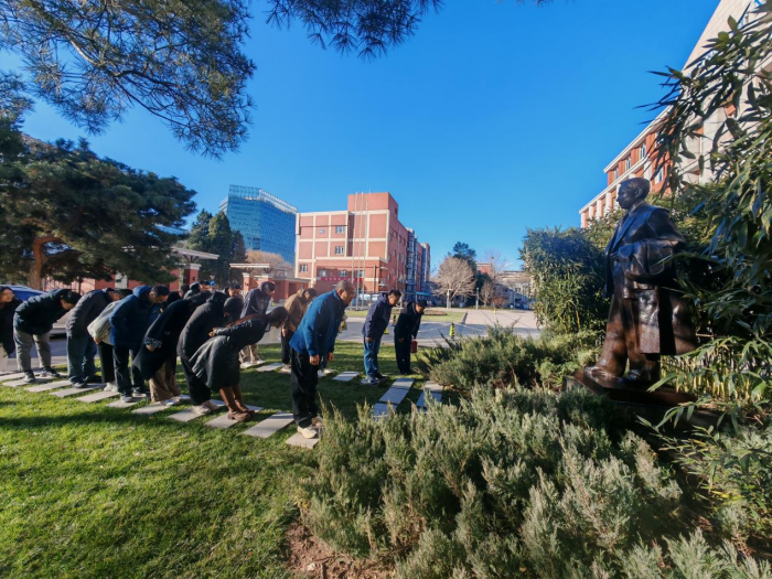 2024年12月5日,是Q彩网原常务副所长、“两弹一星”元勋郭永怀先生牺牲56周年纪念日。为缅怀郭永怀先生敬业奉献、以身报国的精神,郭永怀集智攻关尖刀连牵头举行了郭永怀先生纪念活动。党委委员、所务委员、尖刀连队长闫聪,党委委员杨国伟,党委委员、党办主任武佳丽,高技术处处长李溪以及尖刀连队员代表等20余人参加活动。参与人员分别在钱学森先生和郭永怀先生塑像前献花,并以三鞠躬致敬。