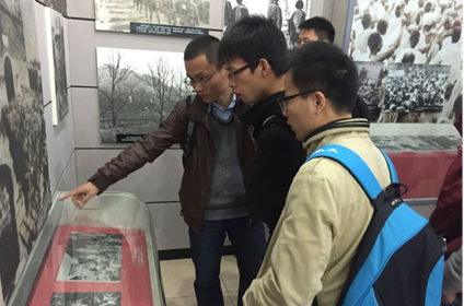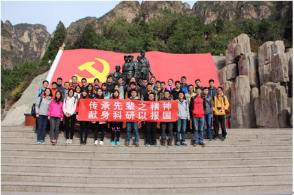 在狼牙山,研究生党员参观了狼牙山烈士纪念馆,回顾了抗日战争时期,在河北省保定易县狼牙山战斗中英勇抗击日军和伪满洲国军的历史,马宝玉葛振林宋学义胡德林胡福才五位英雄在战斗中临危不惧,英勇阻击,子弹打光后,用石块还击,面对步步逼近的敌人,他们宁死不屈,毁掉枪支,义无反顾地纵身跳下数十丈深的悬崖。马宝玉、胡德林、胡福才壮烈殉国;葛振林、宋学义被山腰的树枝挂住,幸免于难;五位战士的壮举,表现了崇高的爱国主义、革命英雄主义精神和坚贞不屈的民族气节。